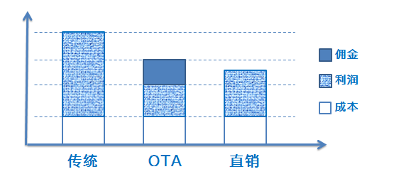 一方面,OTA的高额佣金直接压缩了企业的利润空间。另一方面,企业原本会针对不同的渠道给出不同的报价(因为各个渠道的转化能力存在差异)。但互联网的普及让人们能够轻易地找到其中价格最低的那一个(OTA),那些报价较高的渠道就吸引不到客源。于是企业利润进一步缩水,原有的价格体系也分崩离析。