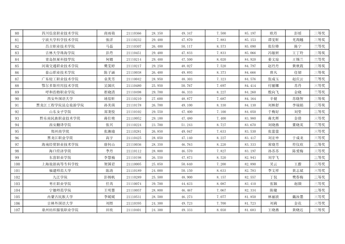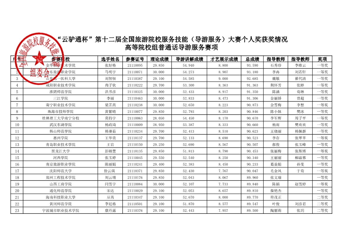 赛场四,全国旅游院校服务技能 ( 导游服务 ) 大赛个人奖获奖情况高等院校组普通话导游服务赛项