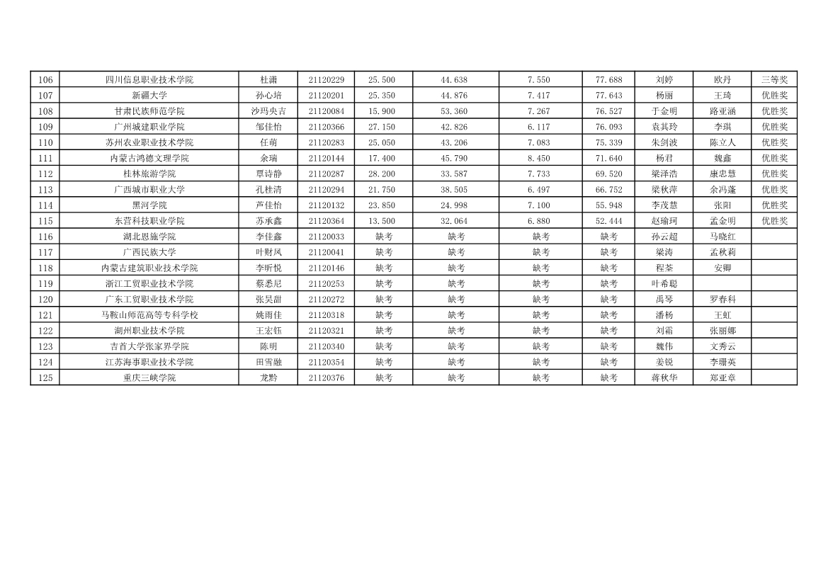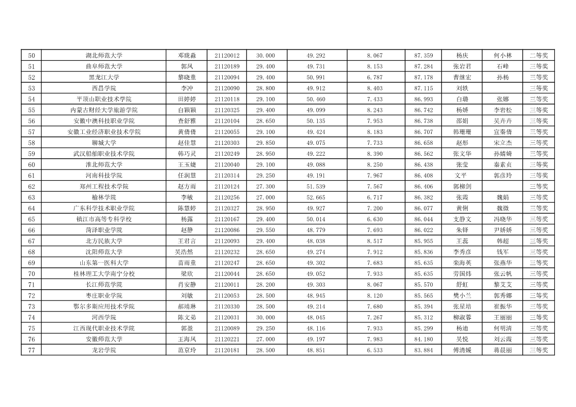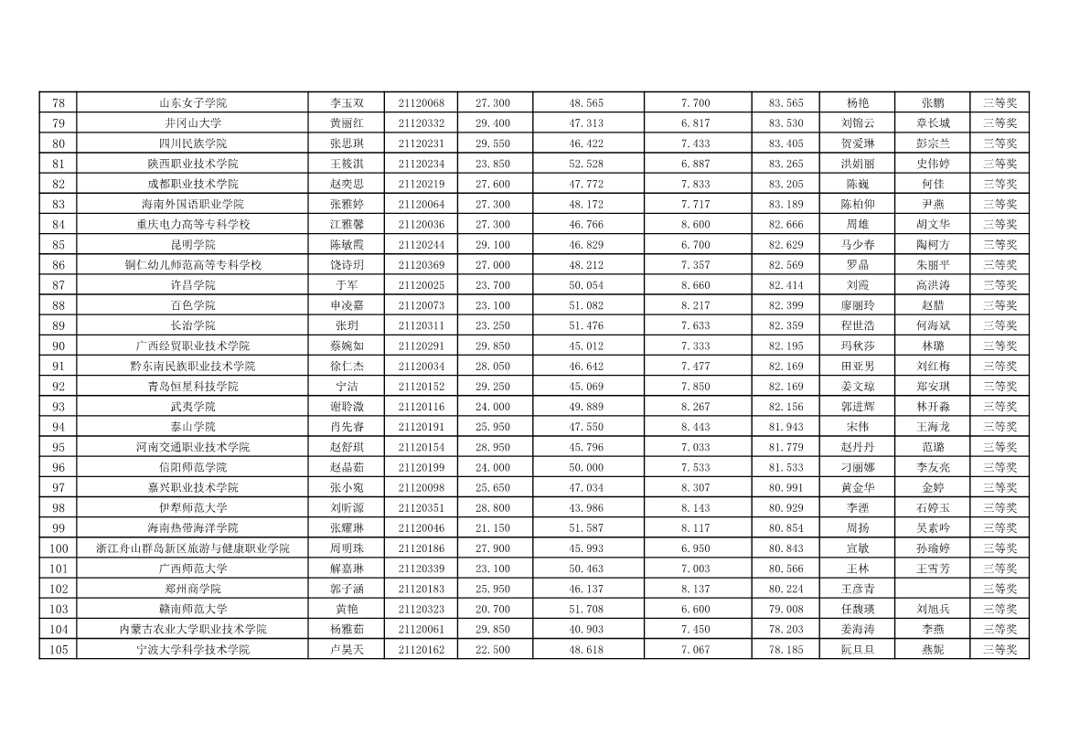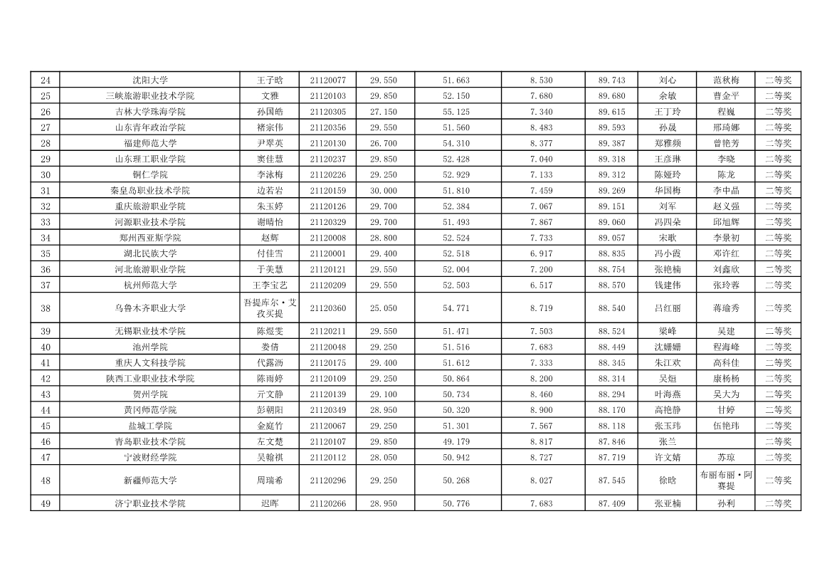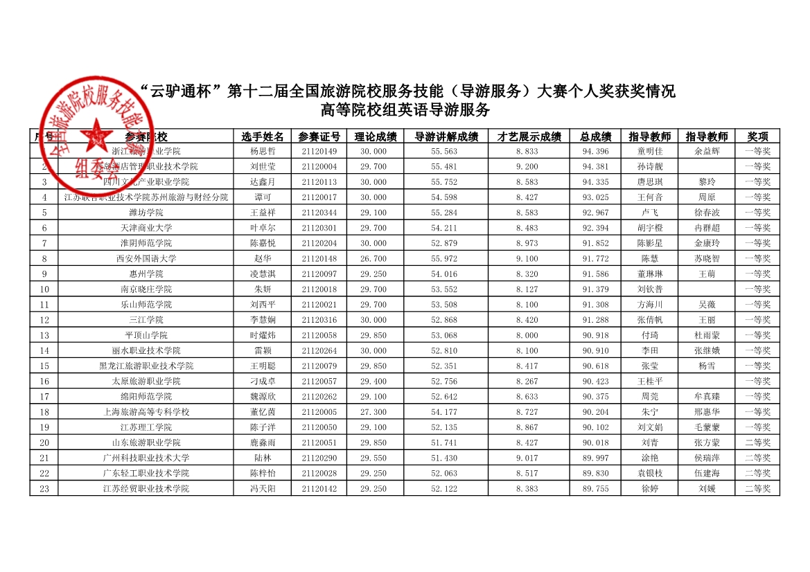 赛场六个人奖成绩,“ 云驴通杯 ” 第十二届全国旅游院校服务技能 ( 导游服务 ) 大赛个人奖获奖情况高等院校组英语导游服务