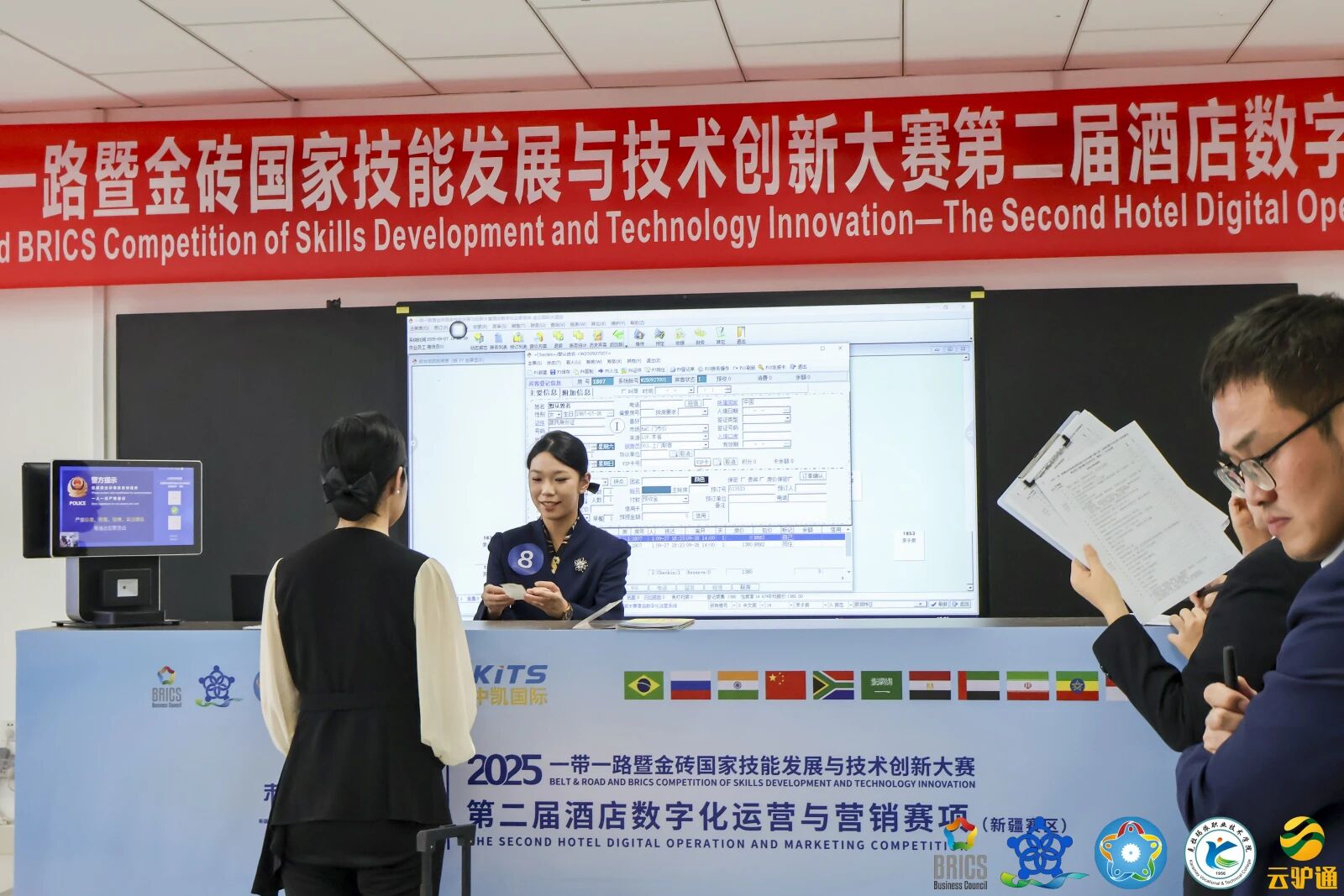 2025-09-30近日,由金砖国家工商理事会、一带一路暨金砖国家技能发展国际联盟等部门联合主办,安徽云驴通信息技术有限公司、中国旅游协会旅游教育分会、克拉玛依职业技术学院等单位联合承办的2025一带一路暨金砖国家技能发展与技术创新大赛第二届酒店数字化运营与营销赛项(新疆赛区)在克拉玛依职业技术学院成功举办并圆满落下帷幕。