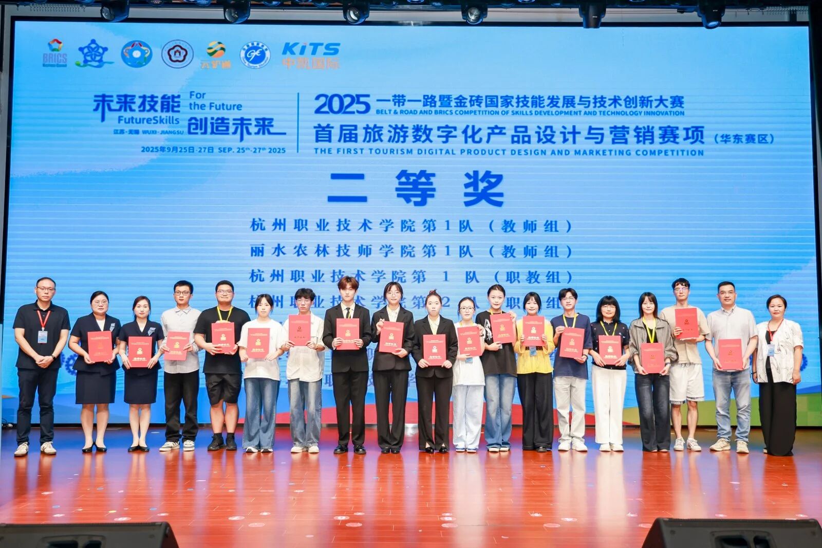 2025-09-30近日,2025一带一路暨金砖国家技能发展与技术创新大赛之首届旅游数字化产品设计与营销赛项华东赛区比赛在江苏无锡圆满落幕。本次大赛由金砖国家工商理事会中方理事会、一带一路暨金砖国家技能发展国际联盟、中国科协一带一路暨金砖国家技能发展与技术创新培训中心联合主办。本次比赛吸引了华东地区众多优秀院校参与。参赛队伍围绕旅游数字化产品设计、旅游目的地数字化营销、智慧旅游解决方案等前沿主题,展开激烈角逐。
