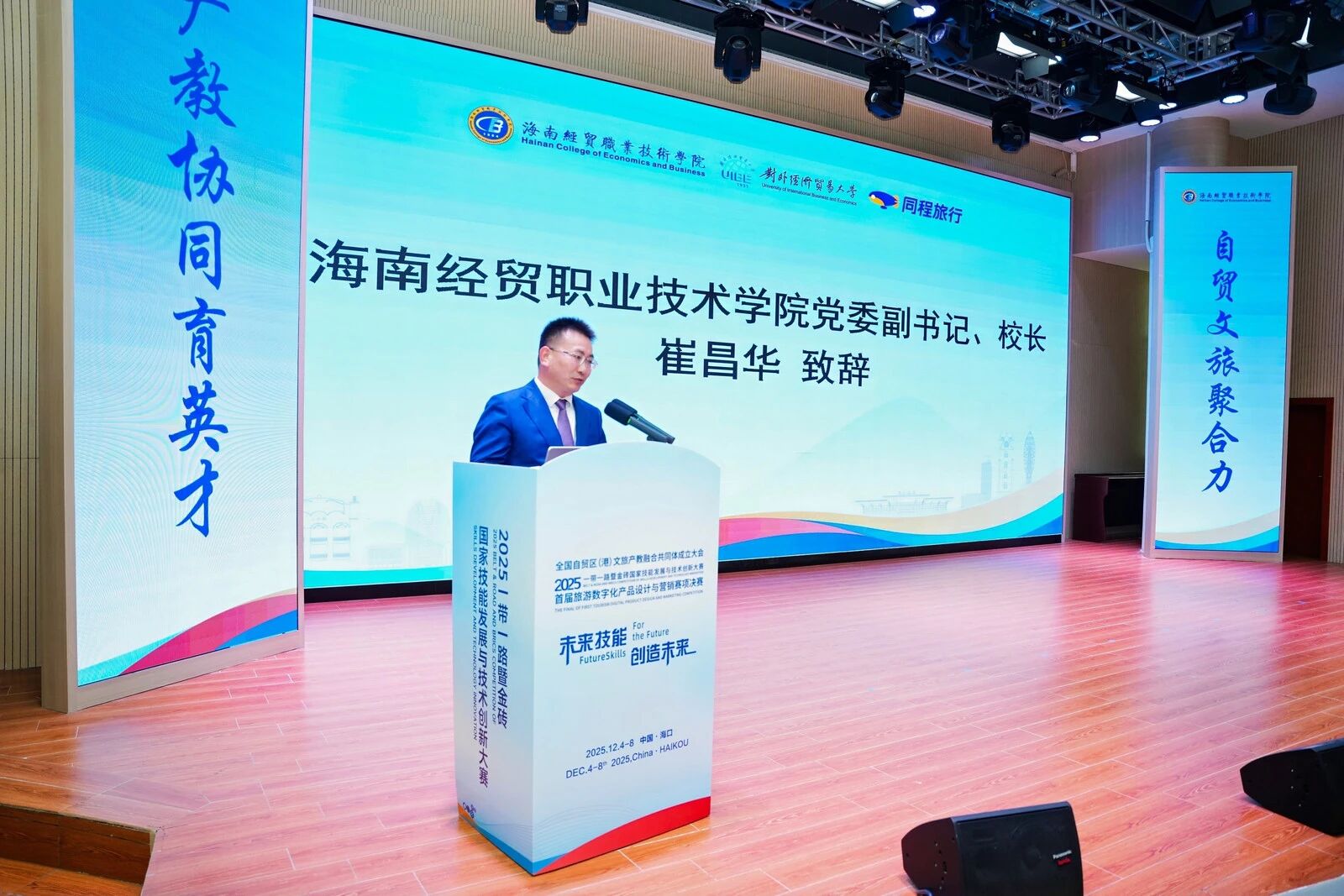 会上,对外经济贸易大学副校长梅夏英、海南经贸职业技术学院党委副书记、校长崔昌华、同程文旅总裁助理、政府事务合作部副总经理罗艳明进行致辞。共同体将通过数字化手段,实现文旅场景与教学实践的深度融合,推动智慧旅游、非遗传承、生态研学等领域的创新应用,为行业输送“懂技术、能实战”的高素质人才。