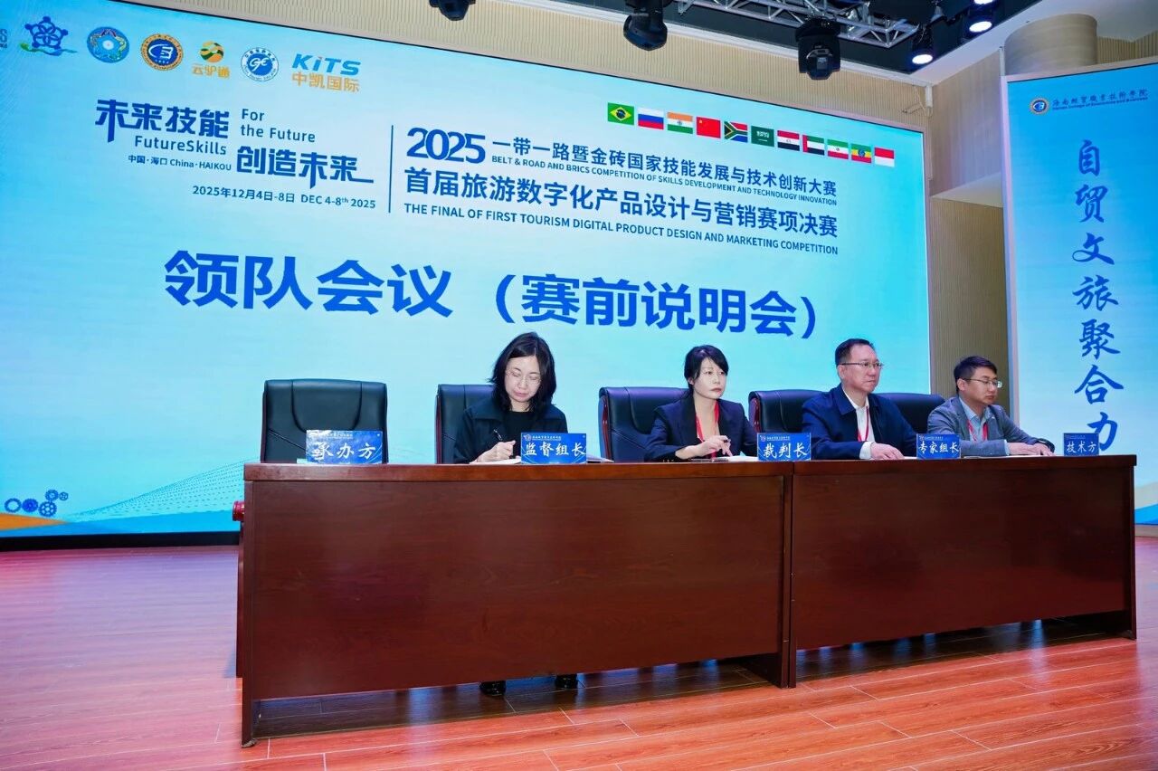 【海口讯】2025年12月5日,椰风海韵的海南岛再迎学术盛事。2025一带一路暨金砖国家技能发展与技术创新大赛之首届旅游数字化设计与营销赛项全国总决赛,在海南经贸职业技术学院隆重开幕。来自全国427支队伍,181所职教、本科学校的1281名选手在全国区域选拔赛的激烈比拼,脱颖而出的97支队伍,349名选手、共计468位师生代表齐聚海南。这是该项国际赛事首次设立旅游数字化领域赛项,旨在应对文旅产业数字化转型浪潮,培养和选拔适应新时代需求的数字化文旅创新人才。