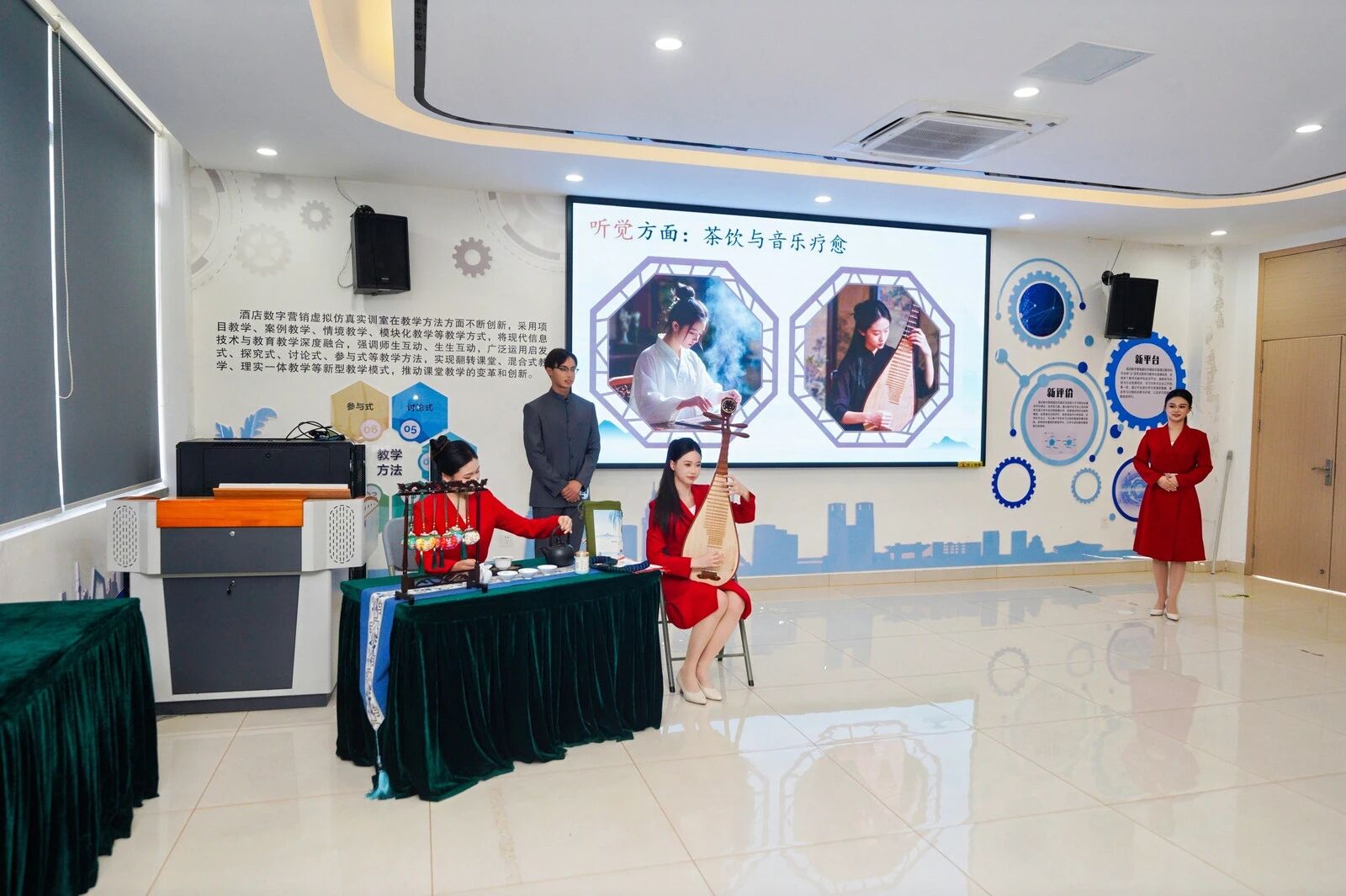 闭幕式上,全体人员肃立奏唱中华人民共和国国歌,随后通过精彩的比赛集锦回顾了赛事中的精彩瞬间。郑州旅游职业学院党委书记王艳红、海南经贸职业技术学院党委委员、副校长张修志等来自全国多所院校的领导嘉宾、专家评委,以及各参赛院校师生代表齐聚一堂,共同见证赛事圆满落幕,分享技能竞技的丰硕成果。海南经贸职业技术学院党委委员、副校长张修志在致辞中肯定了大赛在推动旅游数字化技能人才培养、深化一带一路金砖国家职业教育合作中的重要意义,并为产教融合、技能创新指明了方向。