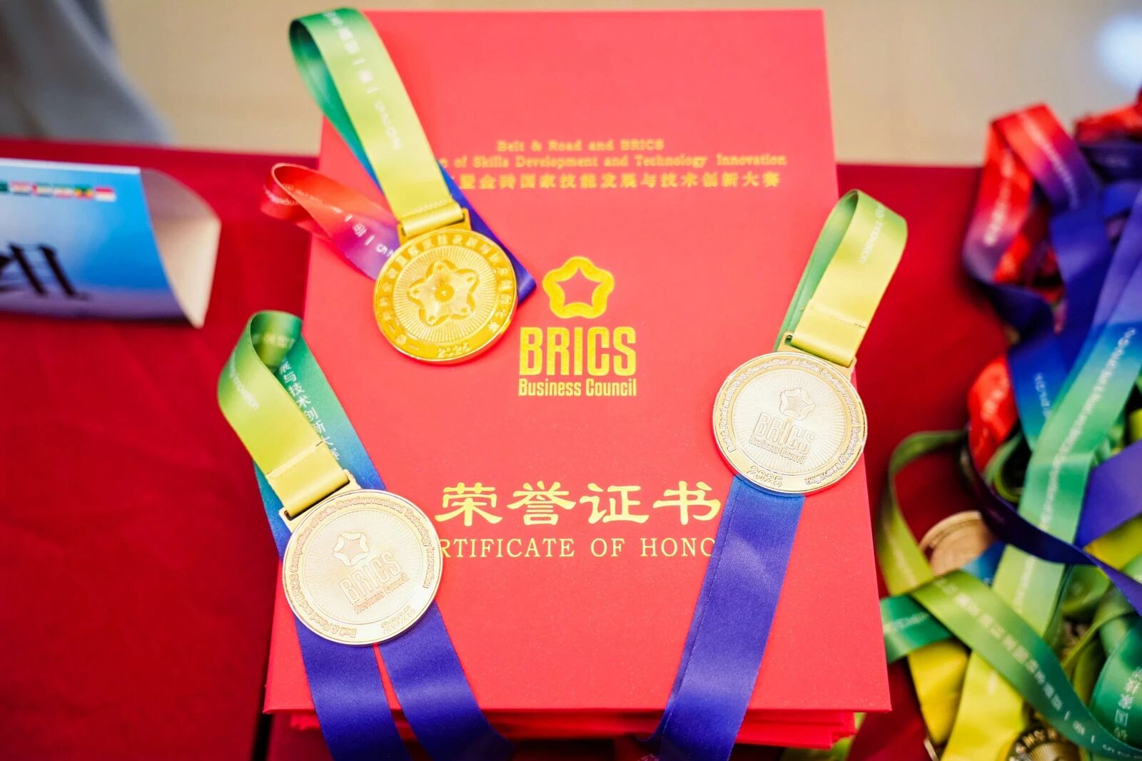 随后,一带一路暨金砖国家技能发展国际联盟理事长刘振英通过视频形式致辞。他表示,旅游产业作为互联互通的重要纽带,在促进 “一带一路” 沿线及金砖国家民心相通、文化交融中发挥着重要作用。本次赛项的举办,是落实多边合作共识、推动技能领域协同发展的具体实践,必将进一步深化各国在文旅数字化领域的交流合作,共同探索产业创新发展新路径。